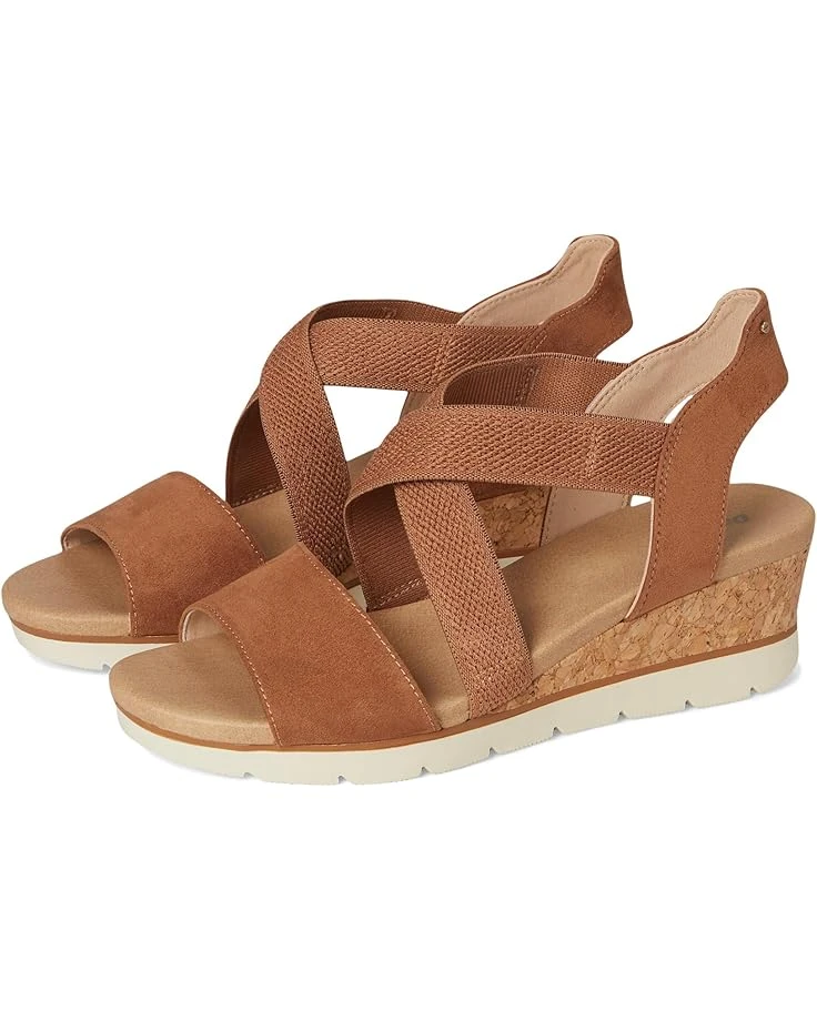 - Sporty hybrid wedge sandals with crisscross stretch straps and wedge heel with sport sole.
